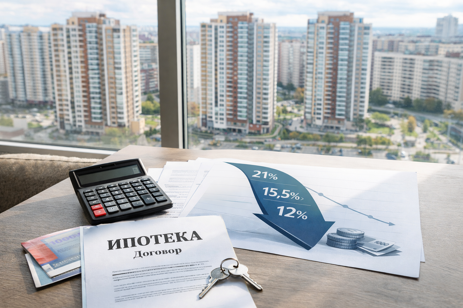 - Ипотечные ставки в 2026 в начале года — около 21% по рыночным программам; прогноз на конец года — 15–17% при базовом сценарии ЦБ.